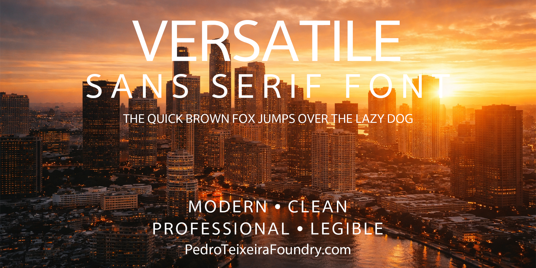 All fonts available on this site are published by Pedro Teixeira Foundry. This Sans Serif Font reflects a design approach focused on clarity, contemporary form, and practical application for designers working in international markets, especially across the United States and Europe. The goal is to offer original typefaces that help creative professionals build stronger and more distinctive visual systems.